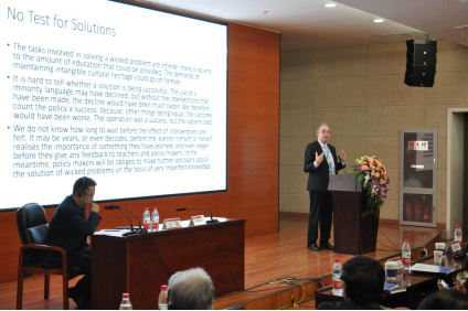 第四阶段由北京大学教育学院院长、党委书记阎凤桥教授主持,西北师范大学万明钢教授作了题为《中华民族共同体意识的内容、结构与形成路径》的报告,国际公民教育著名学者、英国伦敦大学学院教育学院 Huge Starky教授作了题为《CitizenshipEducation andEthnicMinorities in France and England:Comparisons andContrasts》的报告,浙江大学刘海峰教授作了题为《高考改革与教育公平》的报告,英国伦敦大学学院Dina Mehmedbegovic-Smith作了题为《Engaging with Linguistic Diversity in Global Cities: Arguing for ‘Language Hierarchy Free’ Policy and Practice in Education》的报告。