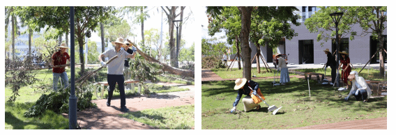 台风“剑鱼”过境后,学院专享区及周边环境受到不同程度的影响。8月27日下午,海南国际学院党总支组织开展“灾后恢复,党员先行”主题党日活动。学院党总支书记、常务副院长路义旭带领全体教师党员和职工进行灾后恢复实践活动。