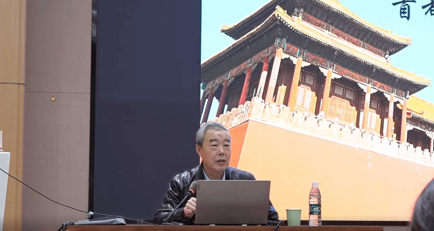 第二场讲座由首都师范大学历史学院教授、博士生导师、北京文化遗产研究中心主任、北京史研究会副会长郗志群围绕北京历史文化作了主讲。他从地理位置、行政建设等方面简要介绍了当代北京的情况并重点介绍了历史上的北京,指出其历史悠久、连绵不绝和节节上升的基本特点。同时通过丰富的史料介绍了北京早期人类活动史、北京城市发展史和北京建都发展史,其中以申遗成功的北京中轴线为例,带领大家欣赏经典的东方建筑。